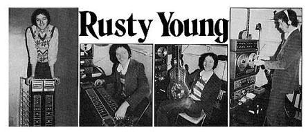 Always on the lookout for new applications of the pedal steel, Rusty has used and discarded more gimmicks than most players see in a lifetime. Though he's only 26 years old, he has 19 years of steel experience and has worked professionally since he was 14. "All the gadgets," he says, "are just ways of trying to get people to see that the instrument has so many more uses than they think. We're only beginning to discover the pedal steel's real potential."